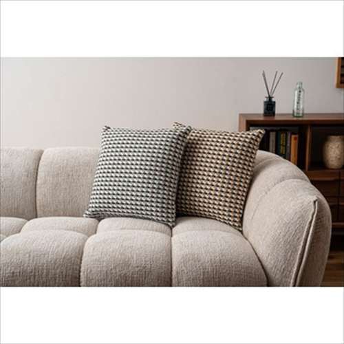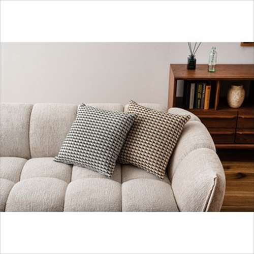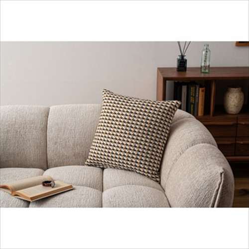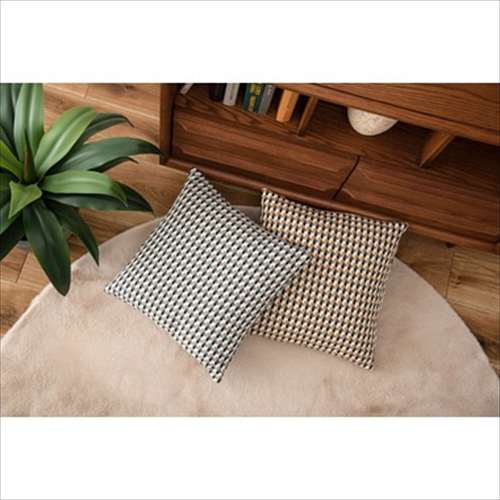 美しい織り模様がモダンなクッション 優しい色味で幾何学柄のデザインが魅力的なクッション。中材にフェザーを使用をしているので高い弾力性があり、リラックスタイムをより充実させます。シンプルながらお部屋にアクセントを加えてくれるアイテムです。