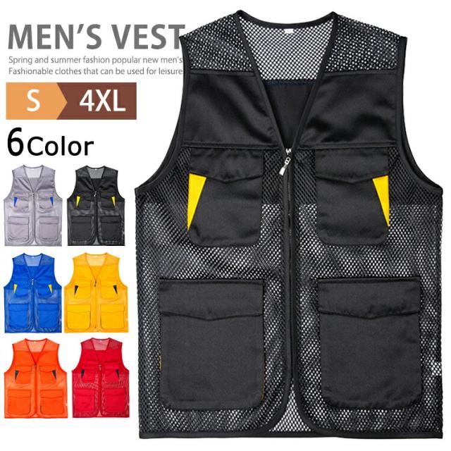 ベスト メンズ お釣りベスト サマーベスト メッシュベスト 登山ベスト 春夏 作業着 農業 仕事 日用大工 ミリタリーベスト イベントベスト スポーツ アウトドア スタッフベスト ゴルフウェア キャンプ カメラマン 作業ベスト 釣り 撮影用 男女兼用 夏