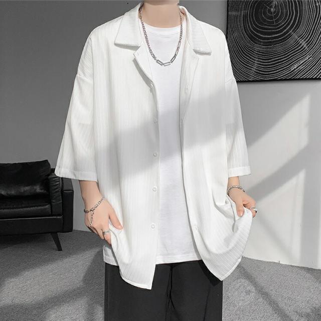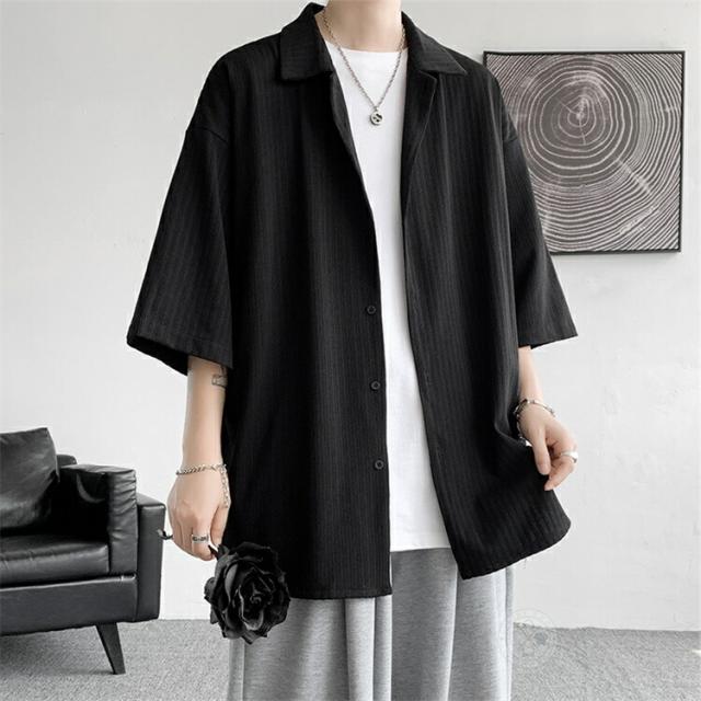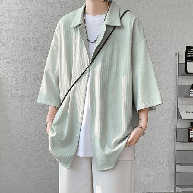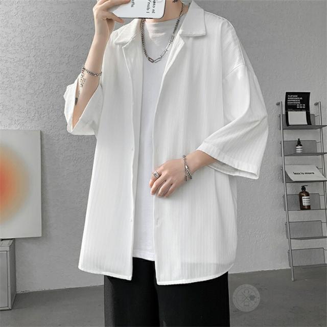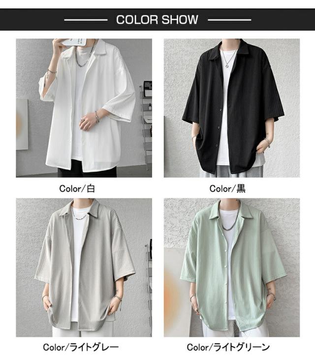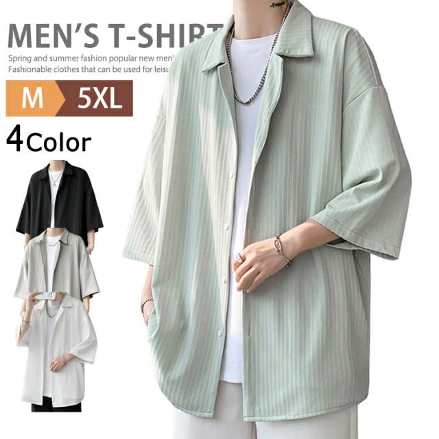 開襟シャツ 半袖 メンズ シャツ 大きいサイズ オープンカラーシャツ カジュアルシャツ 涼しい 無地 春夏 5分袖シャツ ゆったり ストライプ メンズシャツ オープンシャツ UVカット ストリート リゾート 開襟 羽織 薄手 夏コーデ おしゃれ 父の日