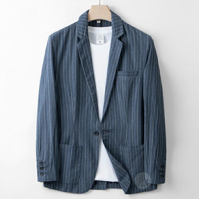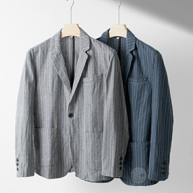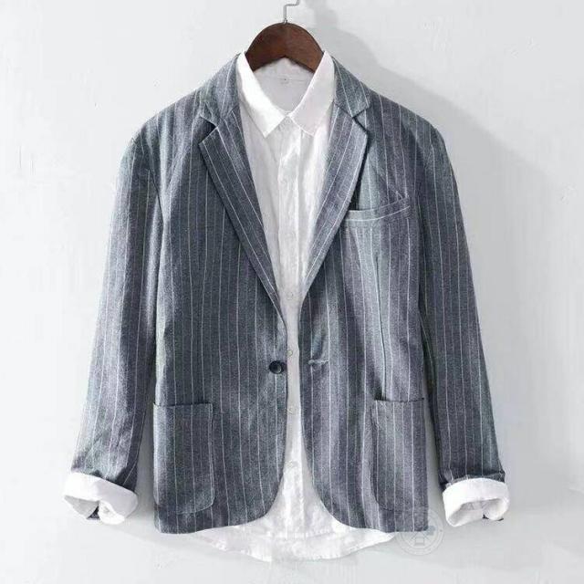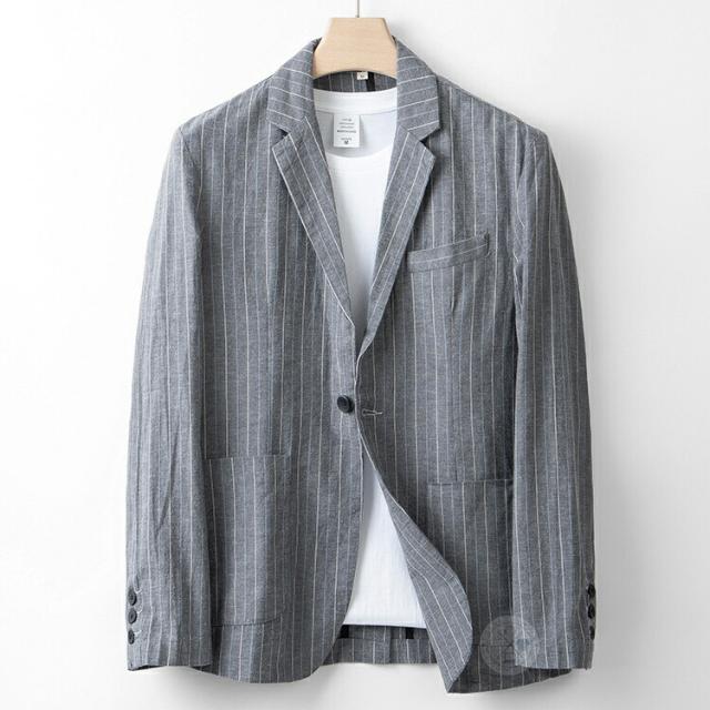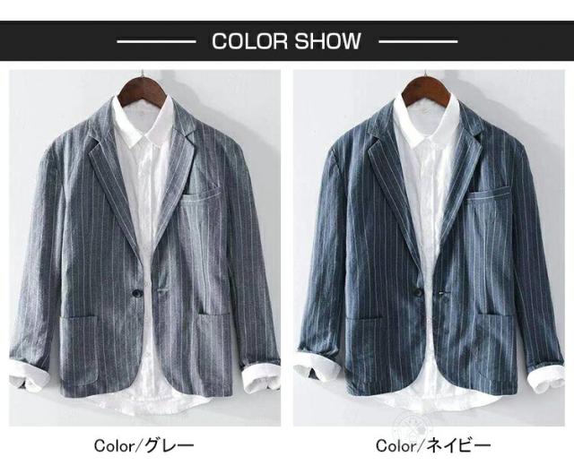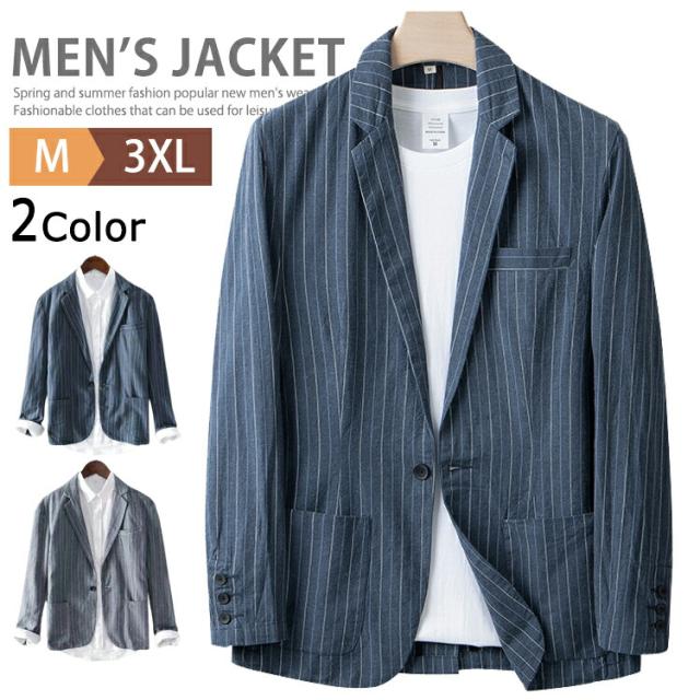 テーラードジャケット メンズ 麻ジャケット ストライプ シングル リネン おしゃれ 天然