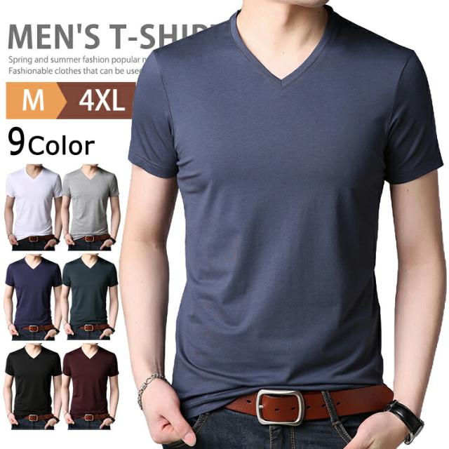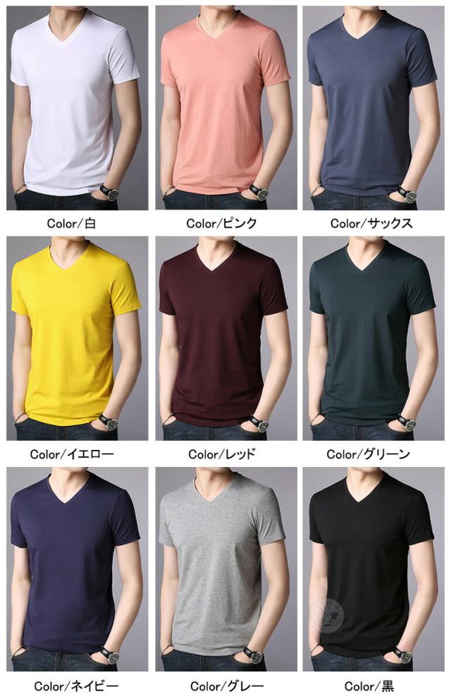 半袖 VネックTシャツ メンズ インナー カットソー Tシャツ 半袖Tシャツ ティーシャツ ゴルフウェア ビジネス スポーツ トレーニング タイトフィット ジムウェア おしゃれ 半そで 袖短め 綿 無地 春夏 運動会 ユニフォーム チームtシャツ 白t 父の日
