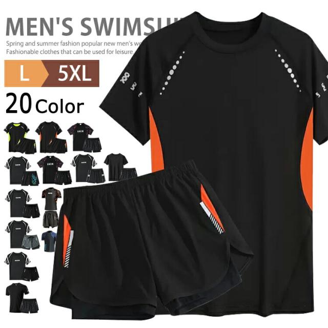 水着 メンズ ラッシュガード フィットネス水着 上下セット 半袖 サーフパンツ おしゃれ 競泳水着 日焼け防止 スポーツ スイムウェア 2点セット 練習用 競泳水着 海パンツ ジム 水泳 大人 水陸両用 サーフィン フィットネス トレーニング水着 ジム用 父の日