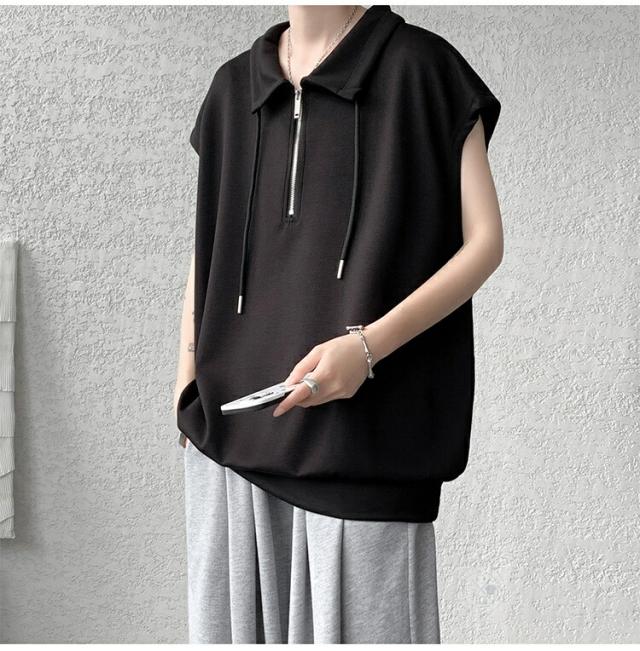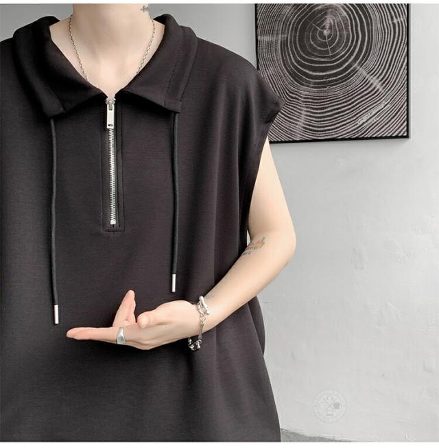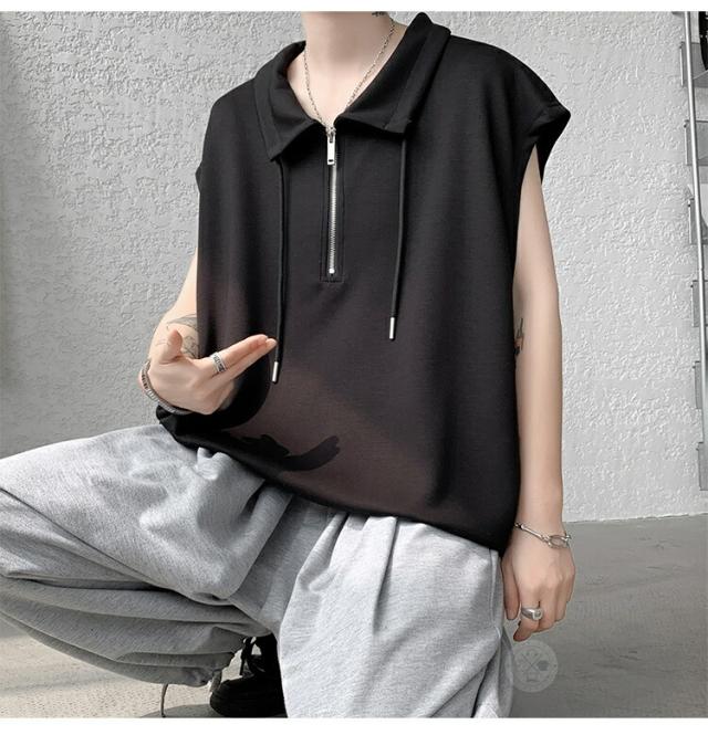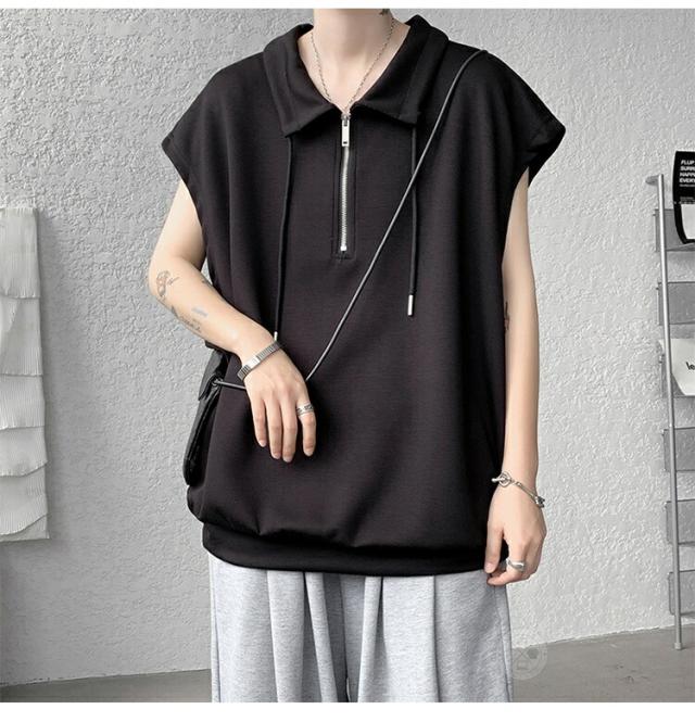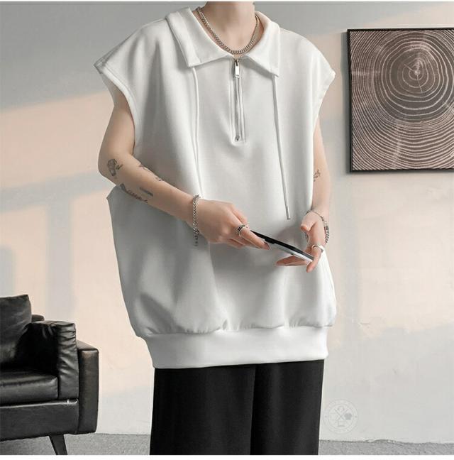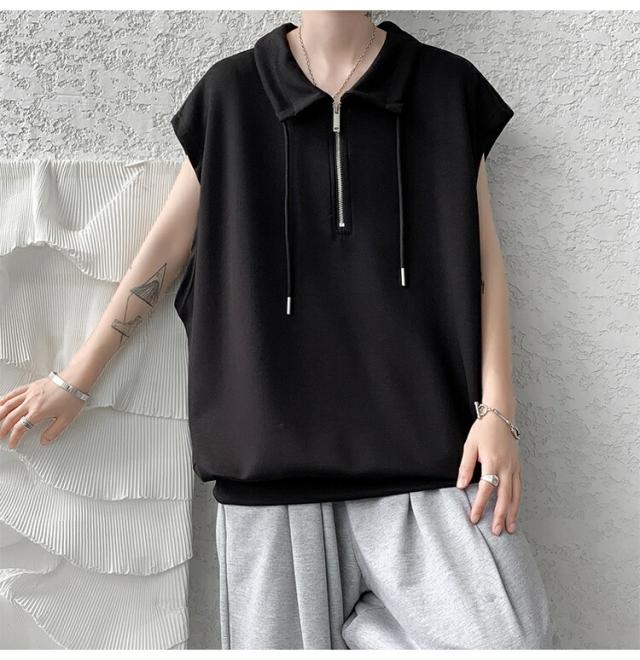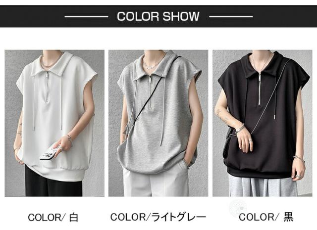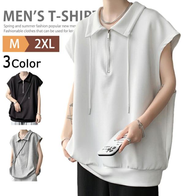 ハーフZIP ハーフジップ タンクトップ メンズ スポーツ ノースリーブ Tシャツ ビッグT ゴルフ ポロシャツ トップス カットソー 襟付きシャツ カジュアル ストリート ダンス リゾート サーフ系 お兄系 袖なし 無地 薄手 涼しい 春 夏 春服 夏服 父の日