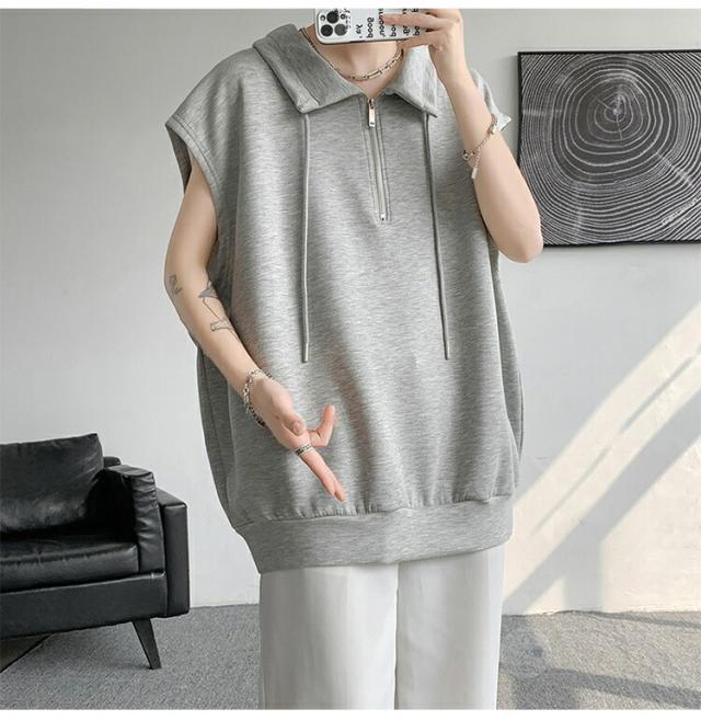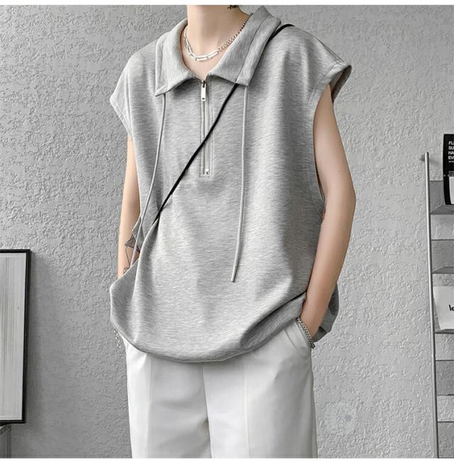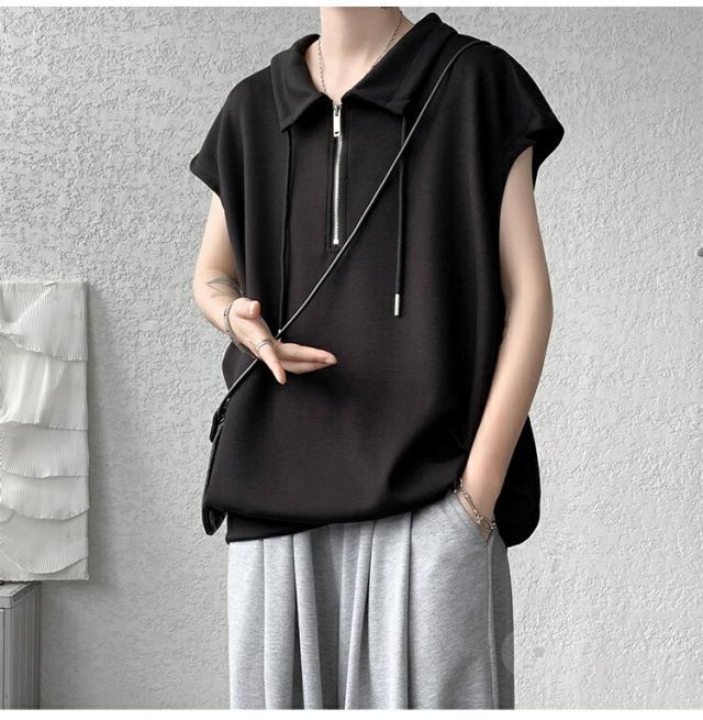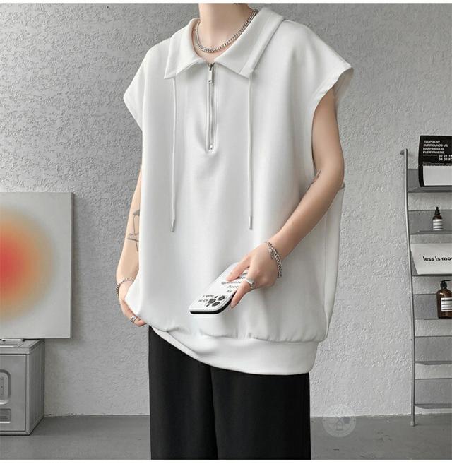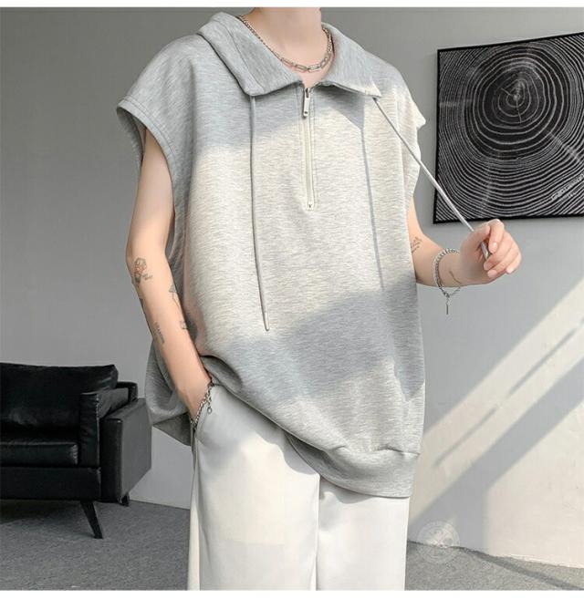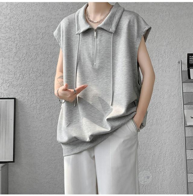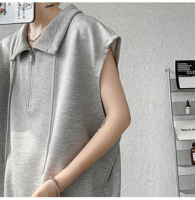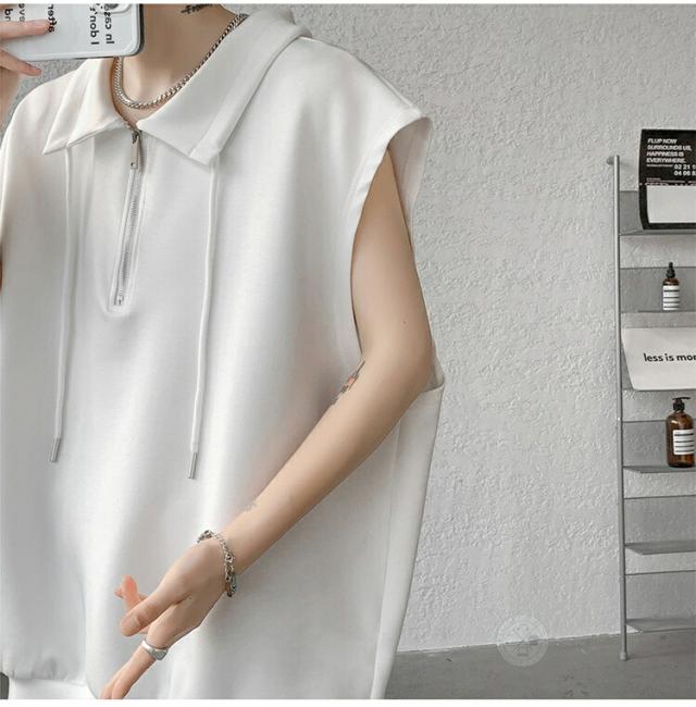 ハーフZIP ハーフジップ タンクトップ メンズ スポーツ ノースリーブ Tシャツ ビッグT ゴルフ ポロシャツ トップス カットソー 襟付きシャツ カジュアル ストリート ダンス リゾート サーフ系 お兄系 袖なし 無地 薄手 涼しい 春 夏 春服 夏服 父の日