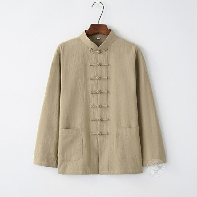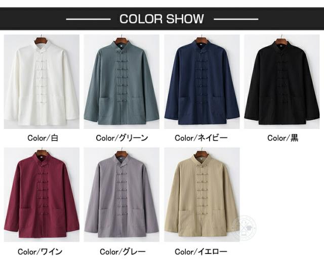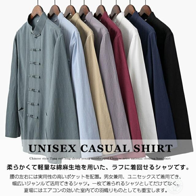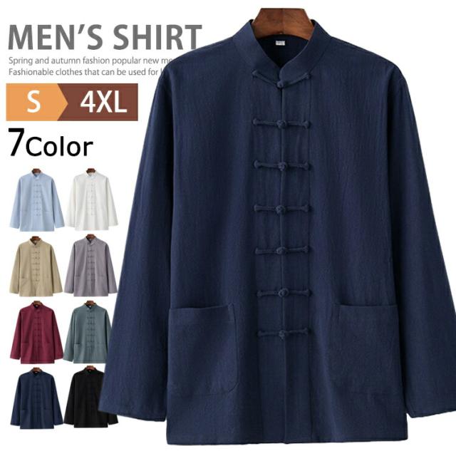 カジュアルシャツ メンズ チャイナ服 チャイナシャツ 長袖 綿麻シャツ スタンドカラー カンフーシャツ バンドカラー チャイナボダン カジュアルコーデ リネンシャツ トップス おしゃれ 男性 唐装 漢服 太極拳服 普段着 中華風 中華服 演出服 コスプレ