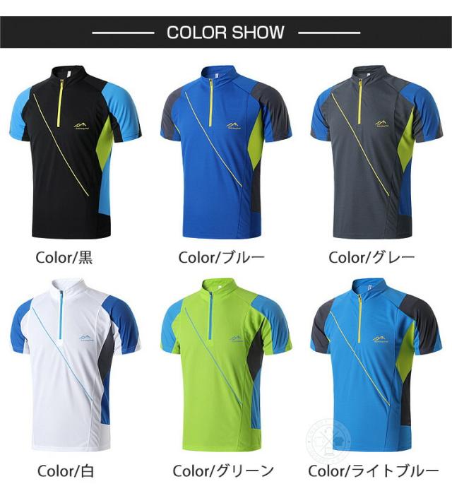 登山 半袖シャツ ハーフジップシャツ 吸汗速乾 Tシャツ メンズ マウンテン スポーツ ゴルフTシャツ キャンプ ティーシャツ アウトドア ロゴT 刺繍 薄手 バスケ サッカー テニス ダンス カジュアル おしゃれ UVカット ウォーキング 父の日 夏用 切り替え