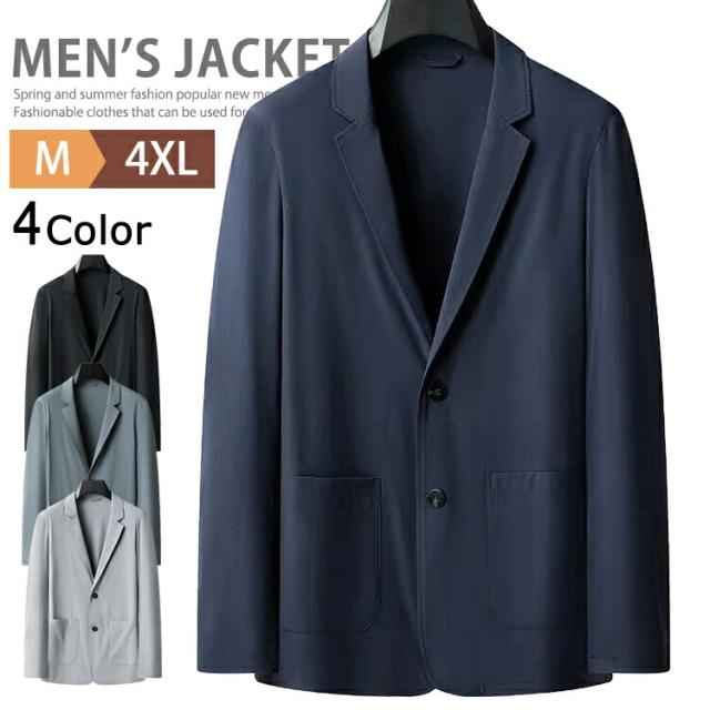 ナイロンジャケット メンズ 夏 春 長袖 カジュアル テーラードジャケット サマージャケット ブレザー 2ツボタン 接触冷感 軽量 薄軽 涼しい UVカット 洗える ジャケット ゴルフジャケット スーツジャケット アウター テレワーク 在宅勤務 父の日