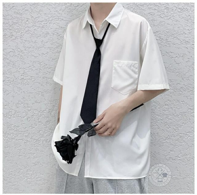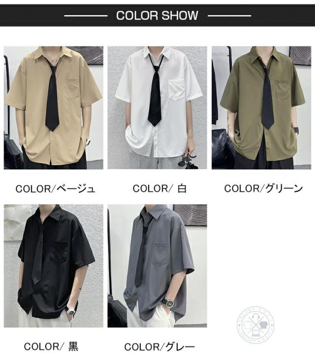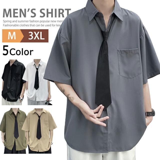 半袖シャツ メンズ ネクタイ付き シャツ カジュアルシャツ 白シャツ ワイシャツ ゆったり トップス おしゃれ 無地シャツ カジュアル ビジネス 涼しい 胸ポケット 夏物 夏服 春秋 20代 30代 40代 50代 shirt 父の日 学生 通学 韓国 ファッション