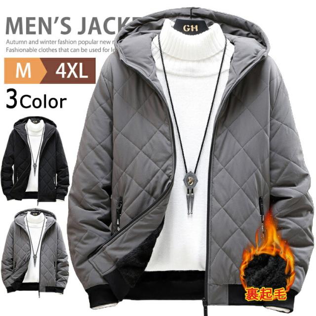 キルティングコート メンズ 中綿ジャケット 裏ボア アウター ブルゾン キルティングジャケット 中綿ブルゾン 中綿コート カジュアル フード付き 厚手ジャケット オフィス ジャケット 春 秋 冬 防寒 軽量 登山 自転車 キャンプ あったか 大きいサイズ