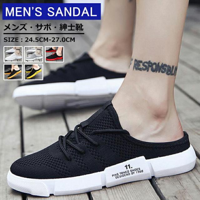 【送料無料 】かかとなし スニーカー メンズ サボサンダル メッシュサンダル スリッポン サンダル かかとなしシューズ スリッパ アウトドア メンズシューズ 紳士靴 通気性 涼しい 軽い 軽量 水陸両用 外履き ビーチ 海 履きやすい 旅行 父の日 おしゃれ 春物 夏物