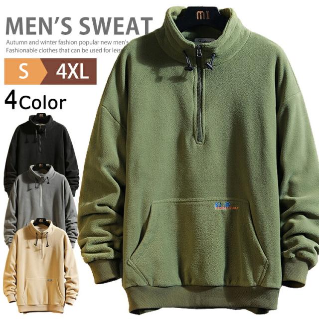 ハイネック トレーナー メンズ 裏起毛 ハーフジップ フリーストレーナー ゴルフウェア 暖かい ボア ルームウエア 無地 長袖トレーナー スウェット プルオーバー インナー トップス おしゃれ カジュアル ボアトレーナー ハーフZIP 防寒 暖かい 秋 冬