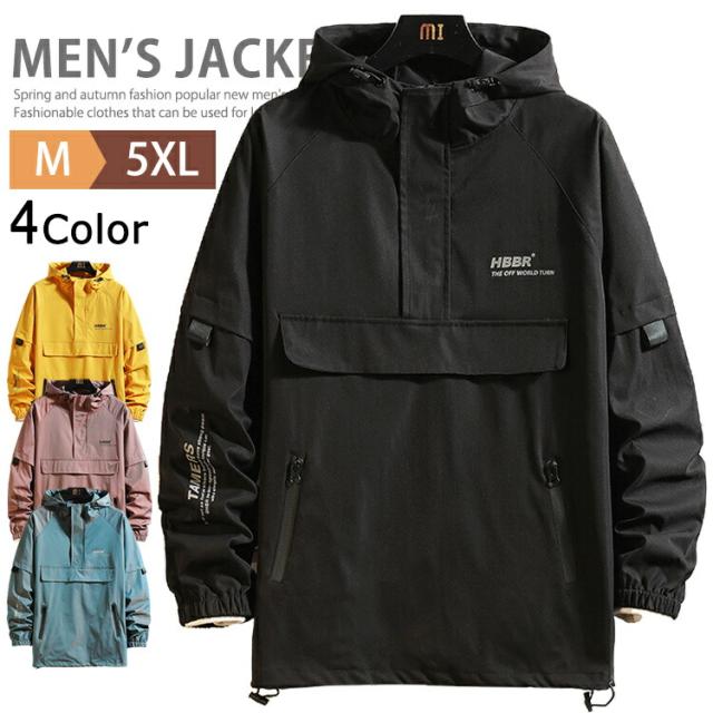 アノラックパーカー アウター ブルゾン メンズ ジャケット マウンテンパーカー プルオーバー ウィンドブレーカー アノラックジャケット マンパー カジュアル ジャンパー 長袖 撥水 ハイネック アウトドア ストレート 春服 秋服 冬服