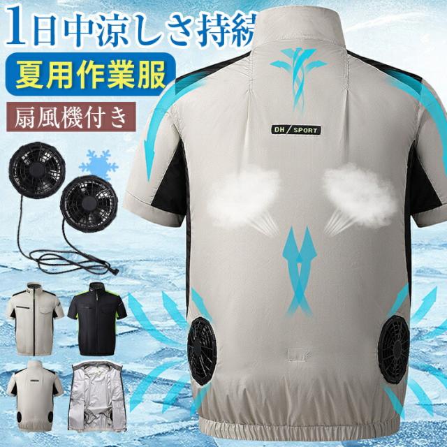 空調作業服 ファンセット 半袖ブルゾン 空調ウェア 空調作業着 空調扇風服 冷却服 ジャンパー ゴルフ サマージャケット ファン付きウェア ワークウェア UVカット 涼しい アウトドア スポーツ キャンプ 釣り 登山 農作業 工事現場 熱中症対策 父の日