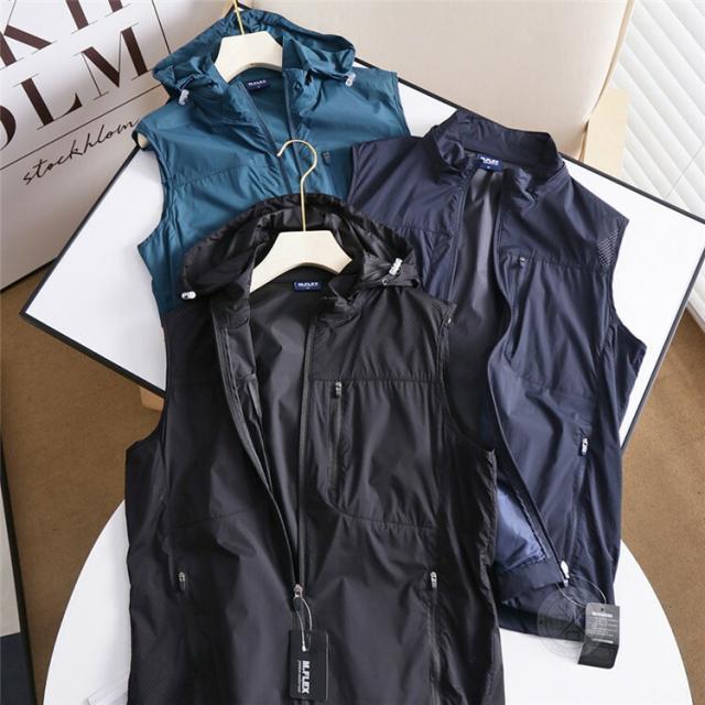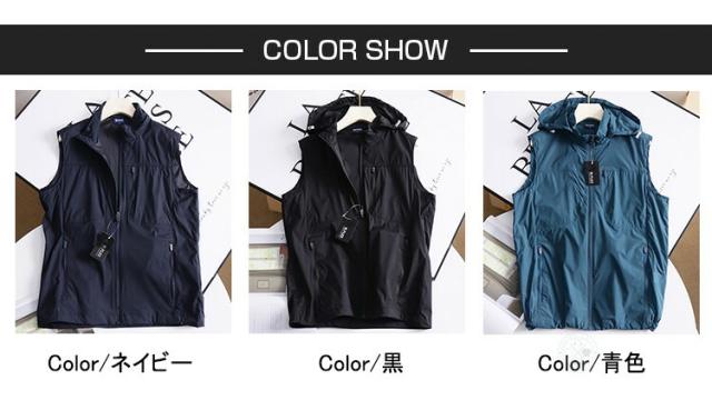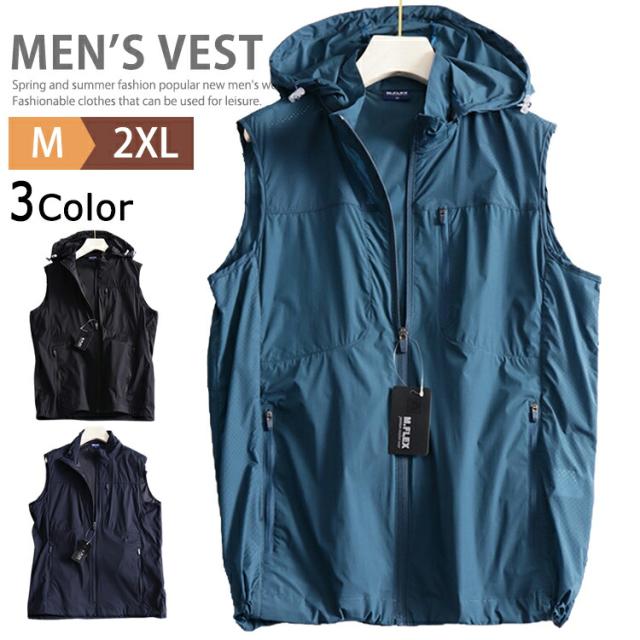 ウインドブレーカー ベスト メンズ ノースリーブ 袖なし ナイロン ジャケット メッシュ ゴルフウエア 防風 通気 登山 フード脱着 スポーツベスト サイクルウエア トレーニング アウトドア キャンプ ダンス 釣り 作業服 父の日 薄手 無地 春 夏