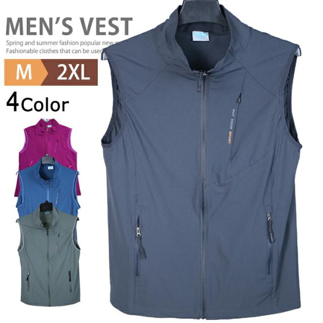 【送料無料】トレーニング ベスト ウインドブレーカー ジップ ノースリーブ 無地 薄手 メンズ レディース ゴルフウェア ナイロンベスト スポーツベスト イベントベスト スタンドカラー チームウエア ユニフォーム レジャー 制服 前開き 男女兼用 軽量 春夏 アウター 父の日