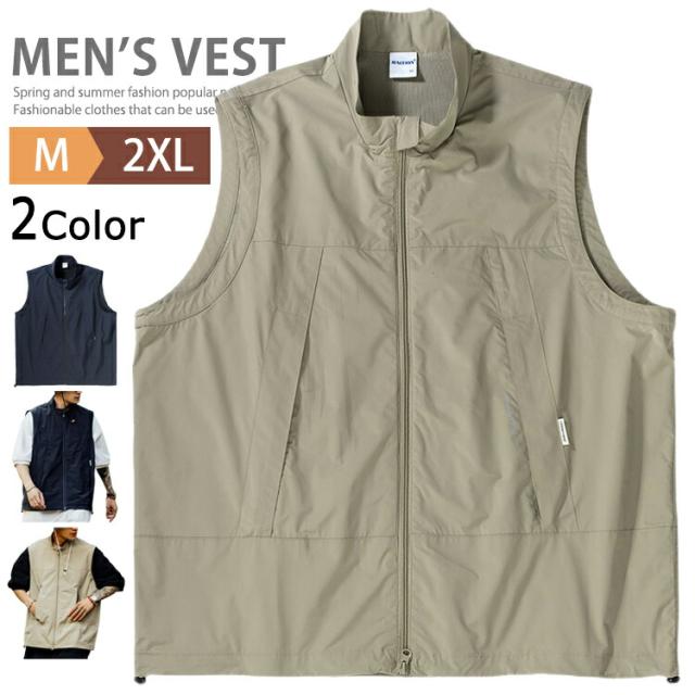 ベスト ジップアップ ジャケット カメラマン キャンプ 防風 通気性 薄手 男性 上着 無地 紳士服