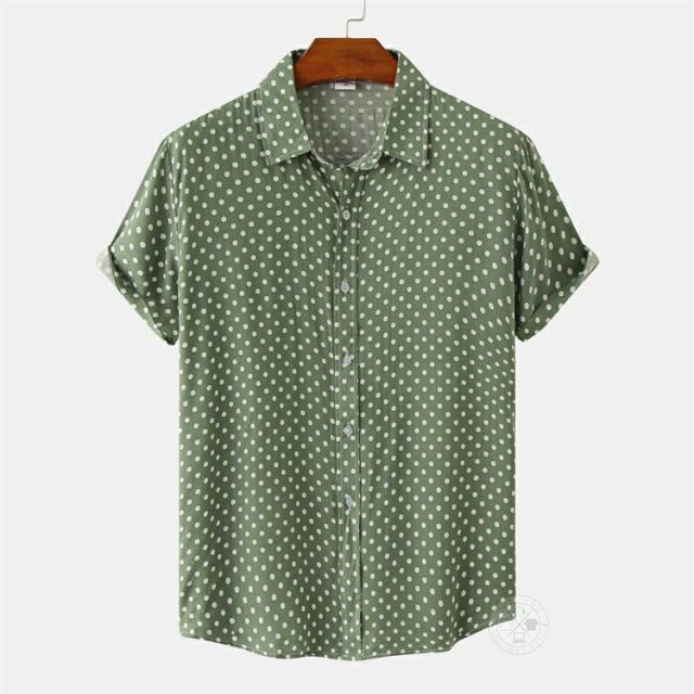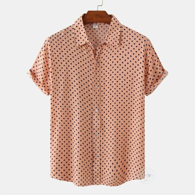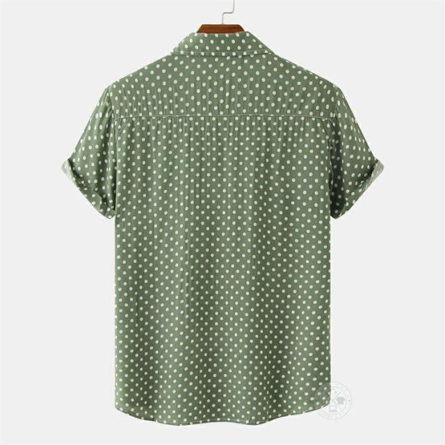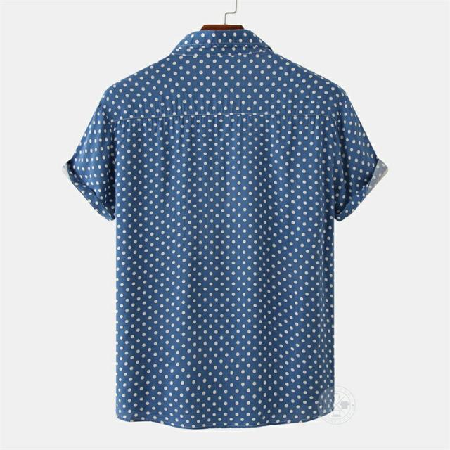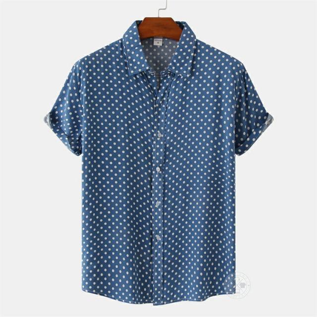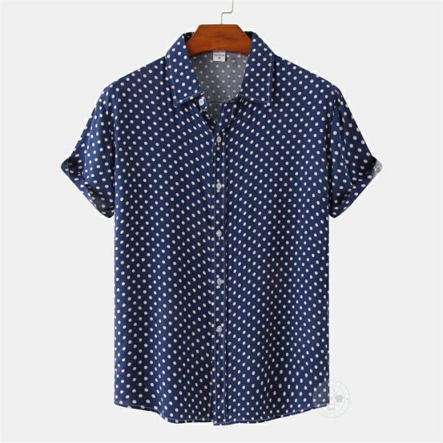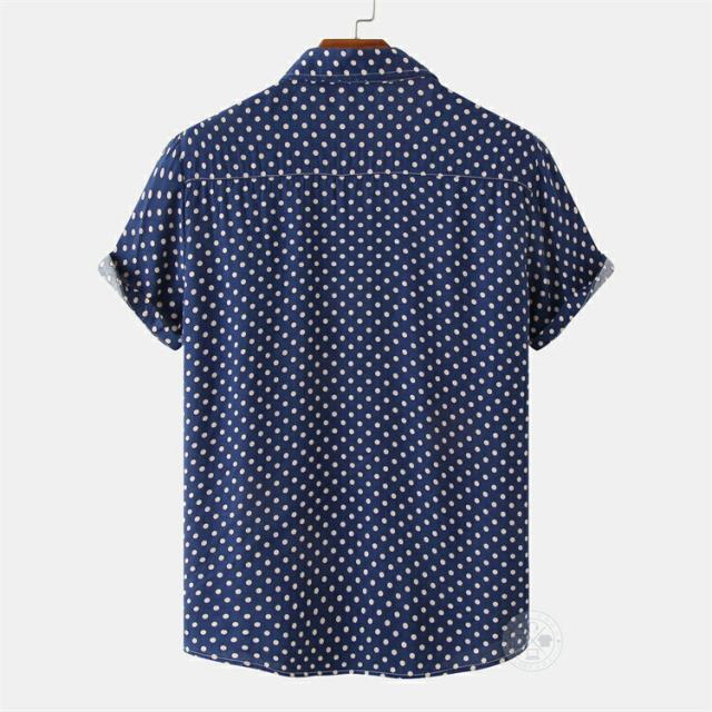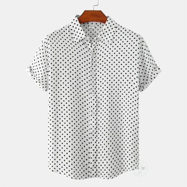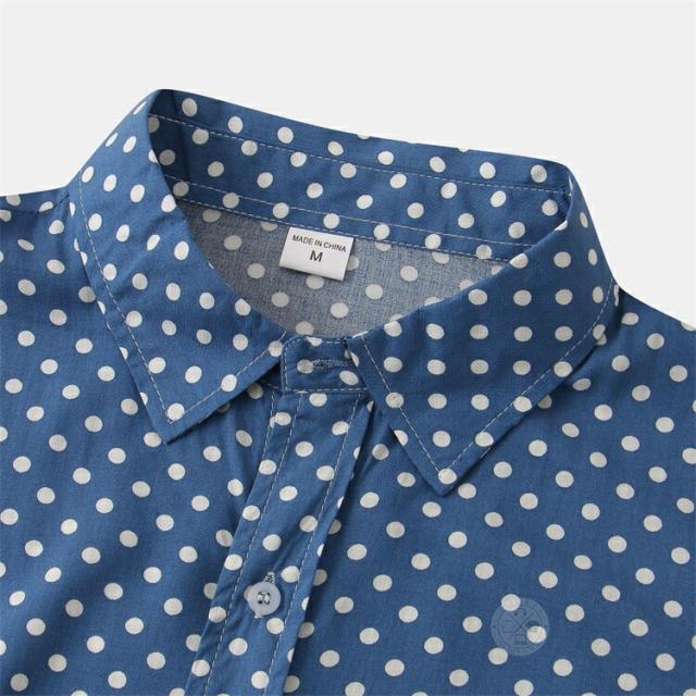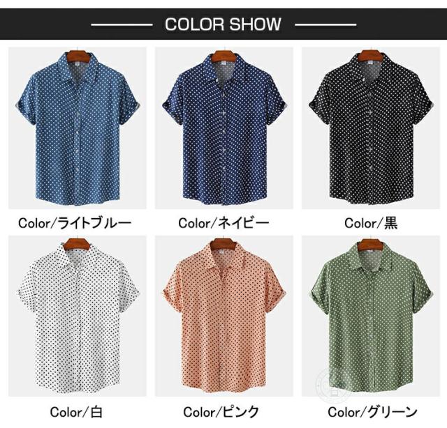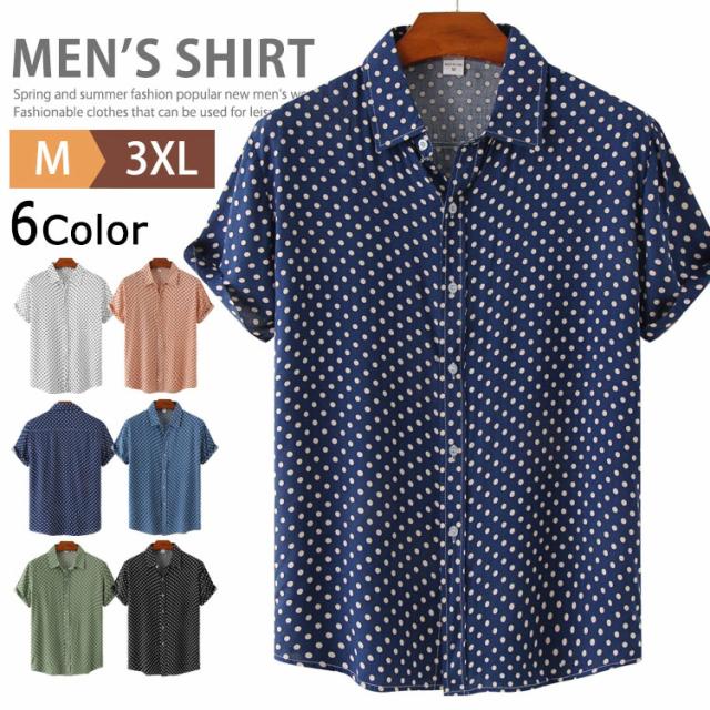 【2点で送料無料】水玉 シャツ ドットシャツ カジュアルシャツ メンズ 半袖 薄手 ビジネスシャツ クールビズシャツ オフィスカジュアル ワイシャツ ゆったり トップス おしゃれ 白シャツ ビジカジ ゴルフ 涼しい 仕事 春 夏 半袖シャツ レギュラーカラー きれいめ 父の日