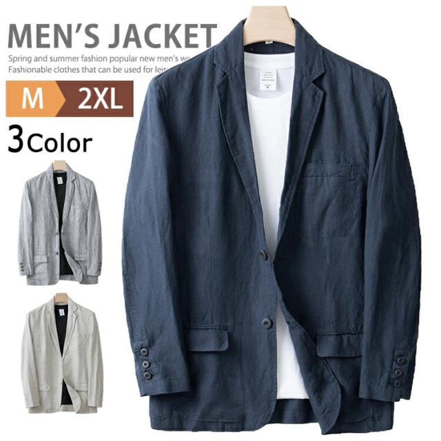 麻ジャケット サマージャケット メンズ 麻100% ブレザー ビジネス テーラードジャケット リネンジャケット フォーマル 披露宴 サマースーツ スーツジャケット 無地 紳士服 アウター ゴルフ 仕事 オフィス 夏服 春秋 父の日 20代 30代 40代 50代 60代