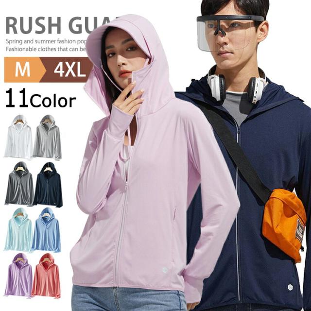 【送料無料】ラッシュガード メンズ レディース UVパーカー ラッシュパーカー つば付き帽子 接触冷感 長袖 ペアルック UVカット 体型カバー ジップアップ シャツ ファスナー フード 水着 父の日 母の日 夏 プール サーフィン マリンスポーツ 水陸両用 吸水速乾