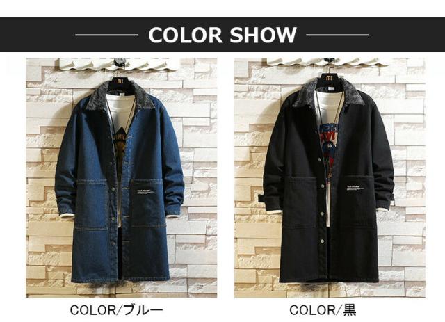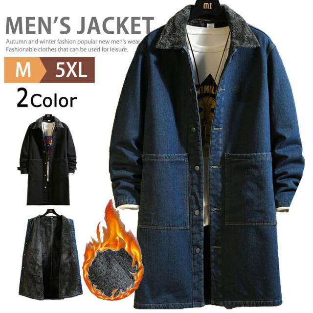 ロングコート メンズ コート ステンカラーコート デニムジャケット 裏起毛 裏ボア スプリングコート デニムコート ボアジャケット 暖かい 裏起毛 デニム アウター 厚手 防寒 あったか 通学 通勤 春服 秋冬 秋服 冬 冬物 無地 カジュアル おしゃれ