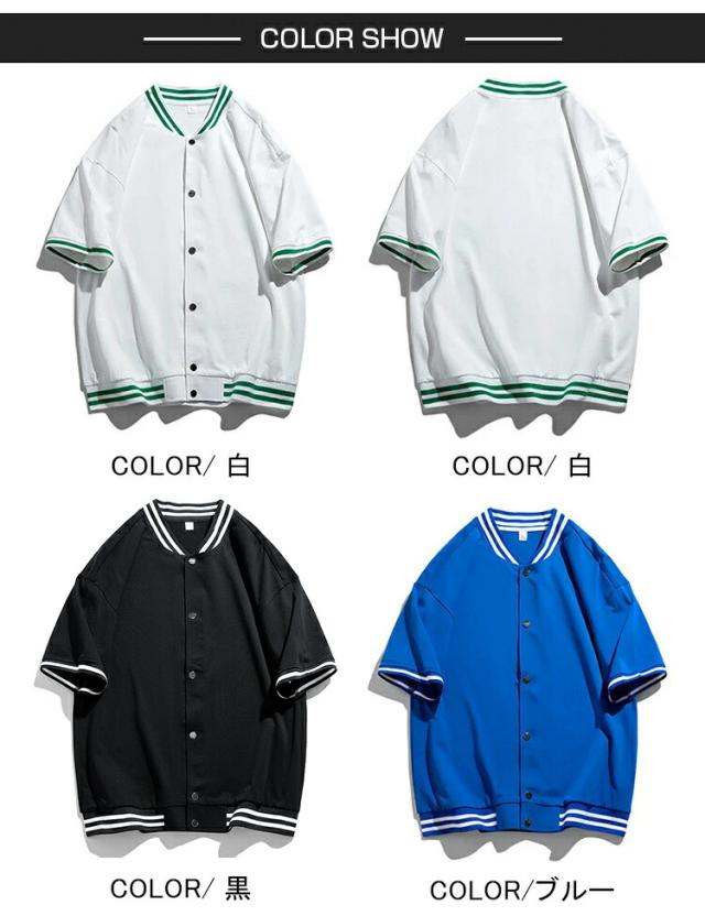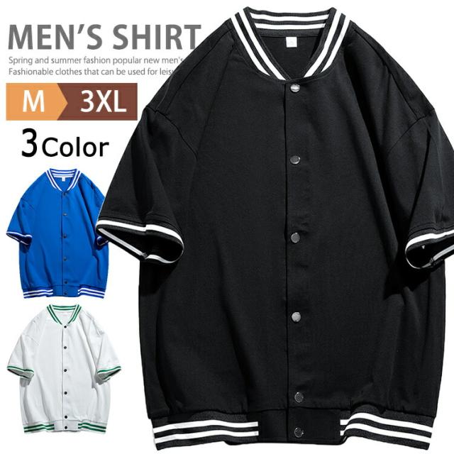 スタジャン メンズ 半袖シャツ カジュアルシャツ 5分袖シャツ スタジアムシャツ ジャージ ベースボールシャツ 野球ウェア 綿100% スポーツウェア シャツ ジャケット ストリート おしゃれ 夏服 父の日