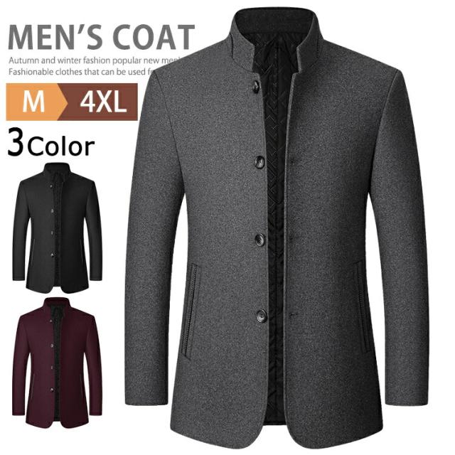 ステンカラーコート メンズ ショートコート 立ち襟 ビジネスコート アウター コート メルトン ジャケット 防寒 防風 40代 50代 60代 中綿ジャケット スタンドネックジャケット カジュアル スーツコート ブルゾン 中綿入り 暖かい あったか