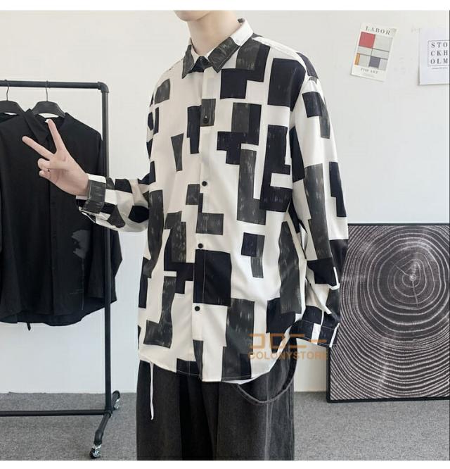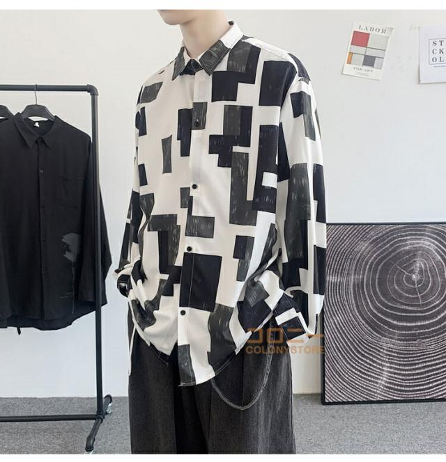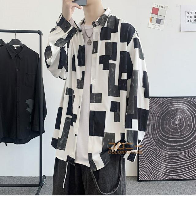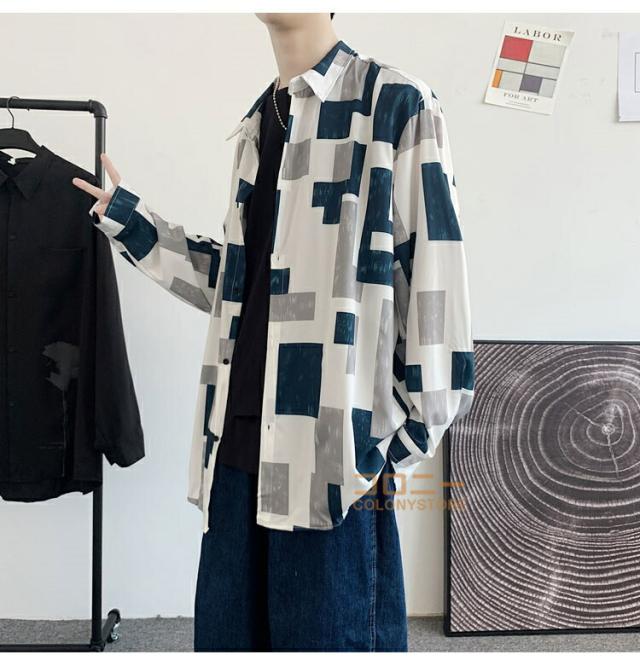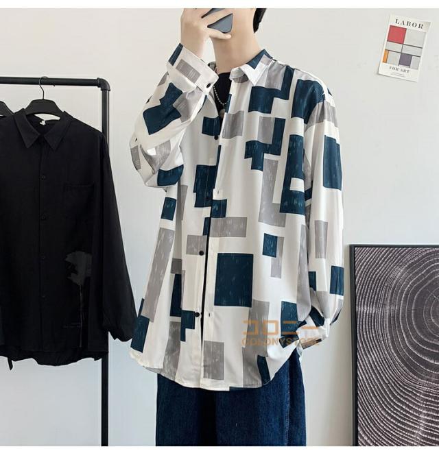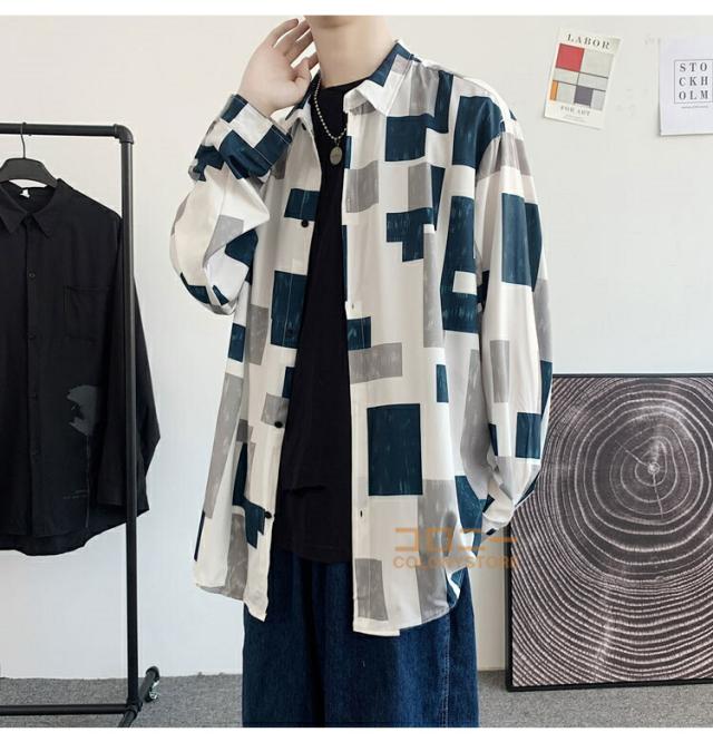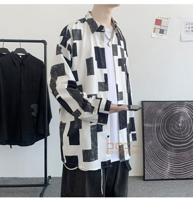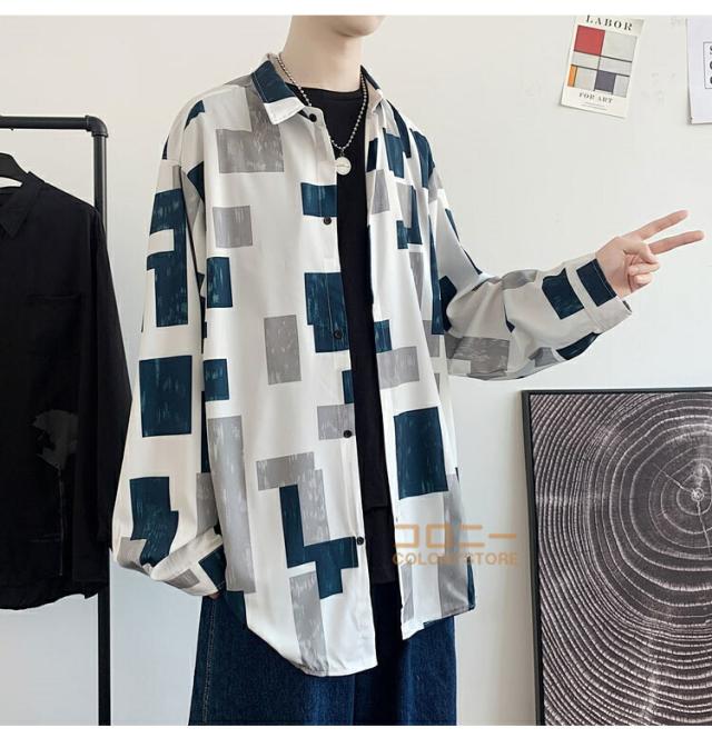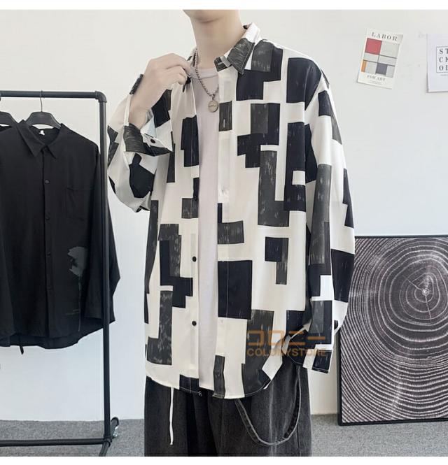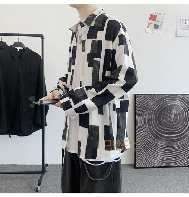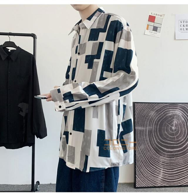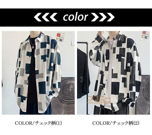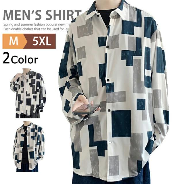 カジュアルシャツ メンズシャツ 長袖シャツ トップス ゆったり ビジネス シャツジャケット オフィスカジュアル 幾何学模様 シャツ ストリート 大きいサイズ 長袖 羽織り お兄系 総柄 個性 秋服 秋物 春服 春物 メンズファッション かっこいい