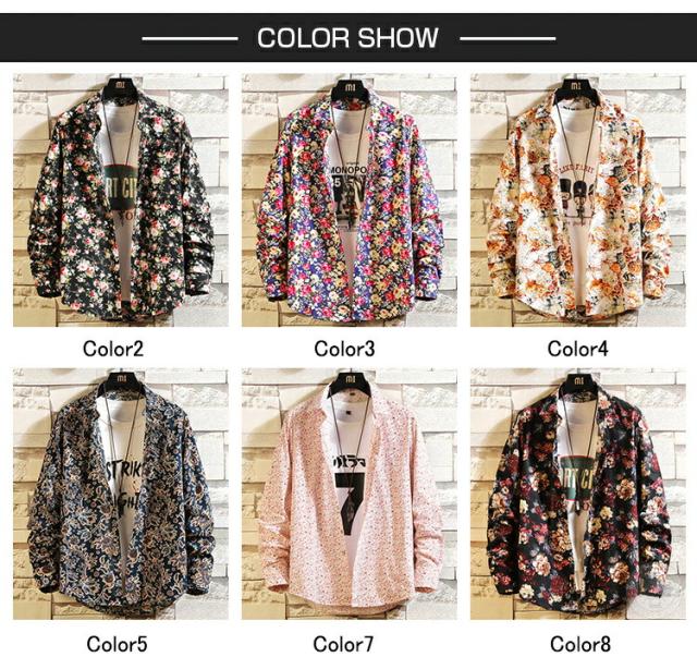 総柄 アロハシャツ メンズ 長袖シャツ カジュアルシャツ シャツ 花柄シャツ ハワイアン トップス カジュアル リゾート おしゃれ ゆったり ストリート 旅行 春物 秋服 父の日 ファッション 大きいサイズ 20代 30代 40代 50代