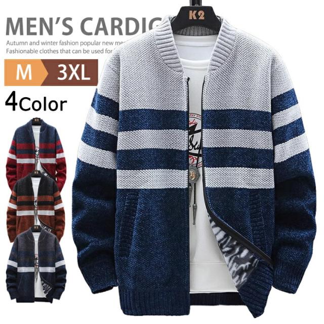 ニットカーディガン メンズ 長袖 裏起毛 ジップアップ カーディガン おしゃれ ニットトップス ニットジャケット オフィスカジュアル 洗えるニット 裏ボア 切り替え あったか 40代 50代 60代 通学 通勤 ファッション ルームウェア 羽織り 秋服 秋冬 冬