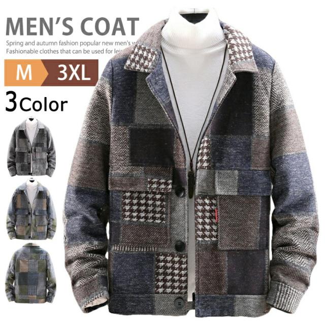 メルトン コート メンズ ジャケット アウター ステンカラーコート ビジネスコート カジュアルジャケット ブルゾン ピーコート Pコート ショート丈 チェスターコート チェック柄 裏起毛 防寒 通学 通勤 おしゃれ 冬服 冬物 秋冬 暖かい あったか