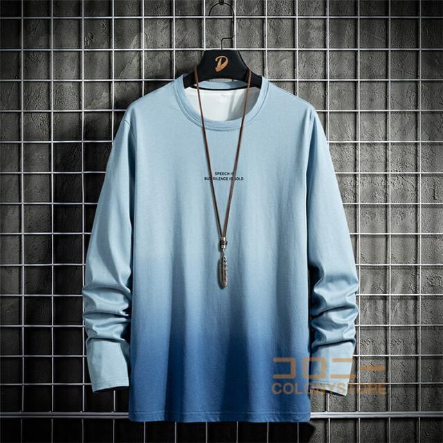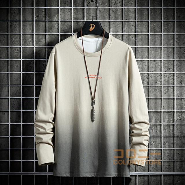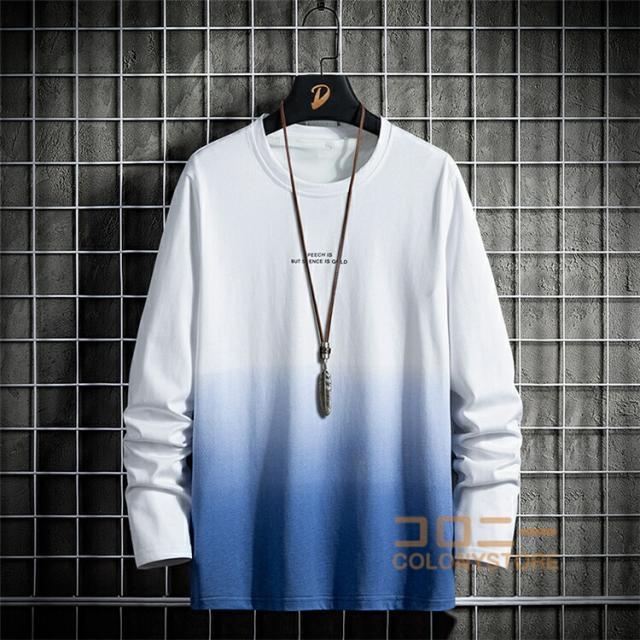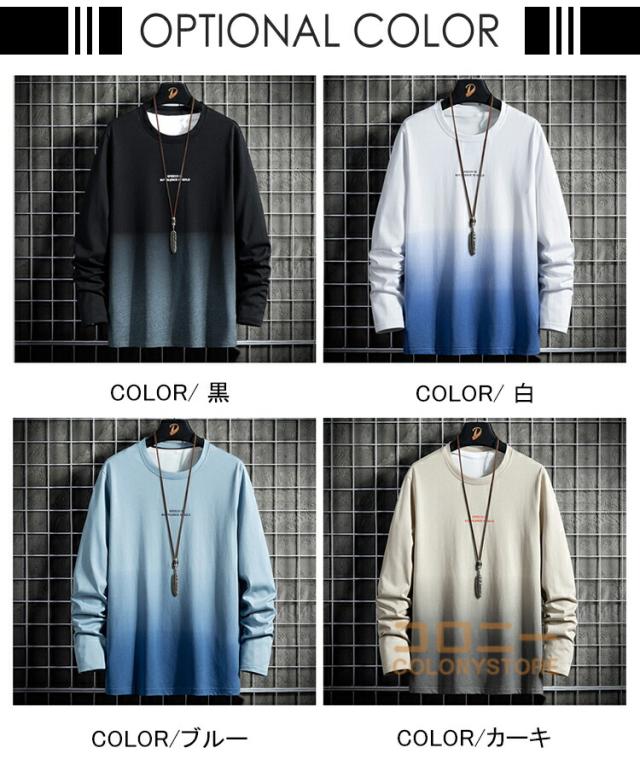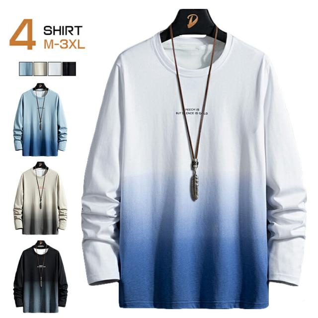 長袖tシャツ ティーシャツ メンズ 綿100% ロングtシャツ ロンT グラデーション クルーネック 長袖 Tシャツ カジュアル ルームウェア インナー おしゃれ トップス 薄手 英字 秋服 ファッション