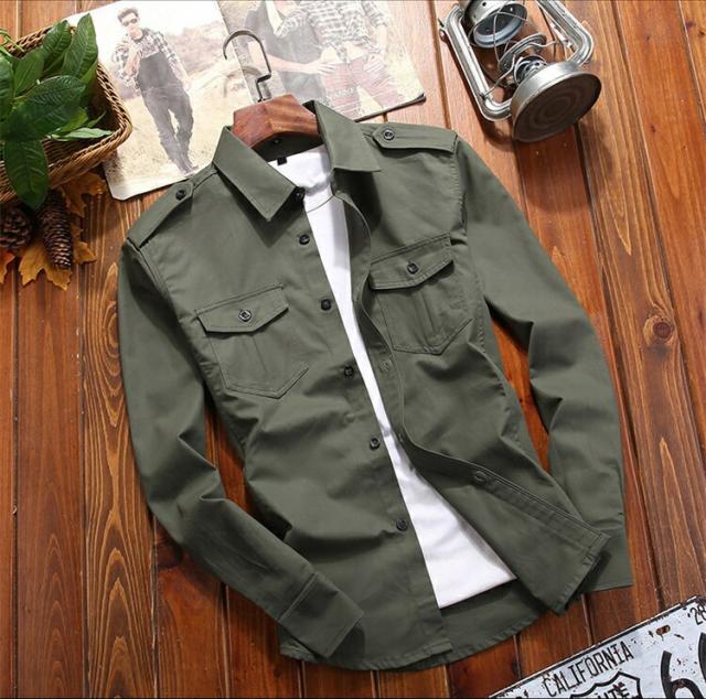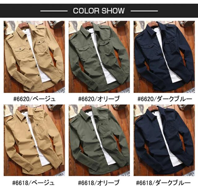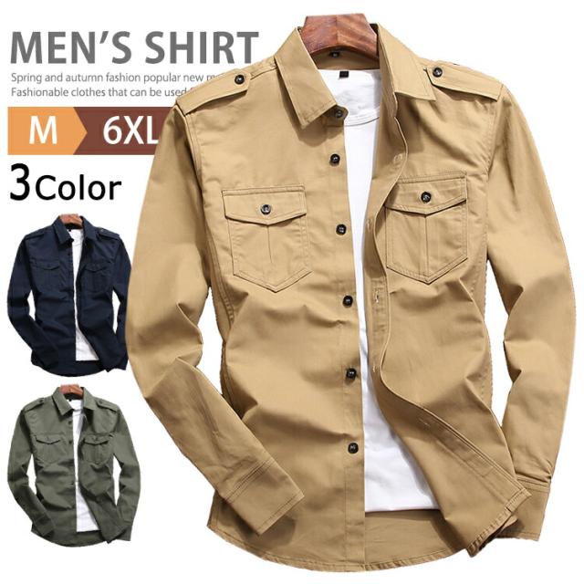 ミリタリーシャツ メンズ 無地 長袖シャツ カジュアルシャツ シャツジャケット トップス おしゃれ 綿100% ミリタリー シャツ ジャケット ワークシャツ アメカジ メンズファッション 大きいサイズ 作業服 普段着 農作業 釣り 山登り 秋 秋服 春 春服