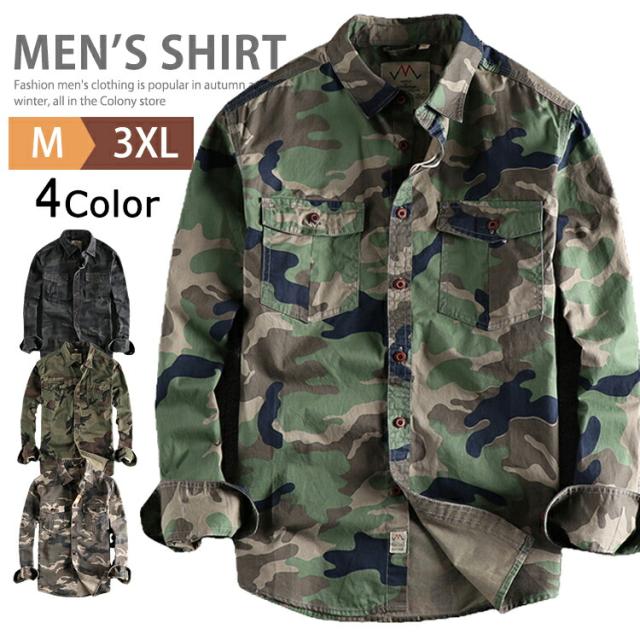 迷彩柄 長袖シャツ メンズ トップス シャツジャケット ミリタリーシャツ 長袖 シャツ カジュアルシャツ 羽織り コットンシャツ 綿100% 秋物 春物 作業着 作業服 通学 勤務 普段着 農作業 トレッキング 釣り 登山 かっこいい おしゃれ メンズファッション