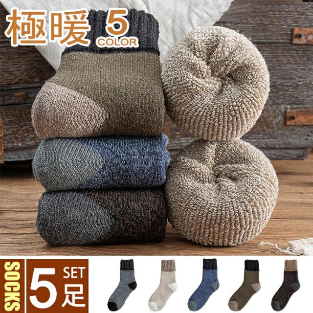 靴下 ソックス メンズ 厚手 暖かい 秋冬 5足セット おしゃれ ビジネスソックス くつした 冷え症 男性用 綿 ウール 暖かいソックス 室内 部屋 冬用 保温 防寒 カジュアル 紳士靴下 24cm-28cm