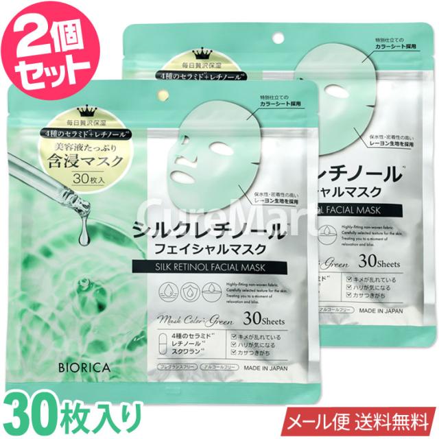 ビオリカ シルクレチノール フェイシャルマスク 30枚入◆2個セット レーヨン生地 グリーン 日本製 BIORICA メール便送料無料 大容量 カラーマスク 含侵マスク オールインワン カラーシートマスク フェイスパック なめらか肌 セラミド レチノール ドウシシャ 30P