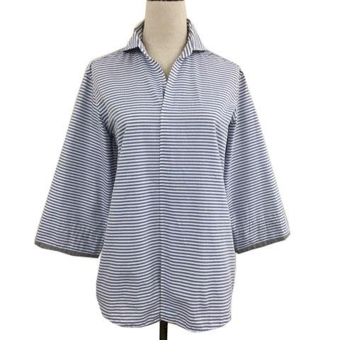 【中古】トゥモローランド シャツ ブラウス プルオーバー スキッパー ボーダー スリット 七分袖 M 青 白 ブルー