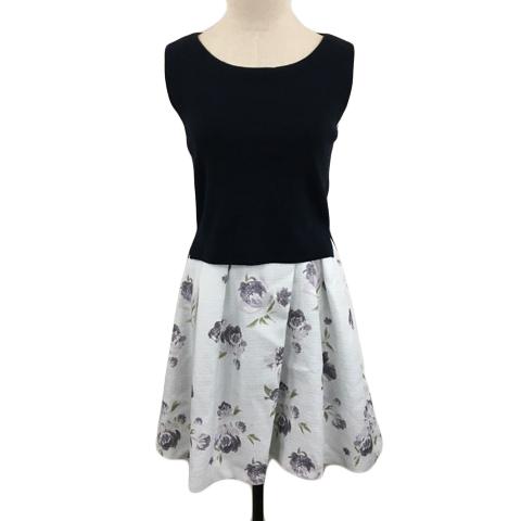 【中古】マーキュリーデュオ セットアップ ワンピース 花柄 膝丈 カットソー ニット 無地 ノースリーブ F 紺 白