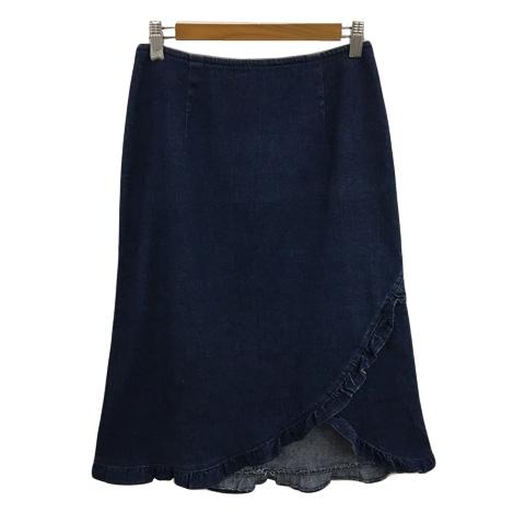 【中古】レストローズ L'EST ROSE スカート 台形 膝丈 デニム フリル 無地 M 紺 ネイビー レディース