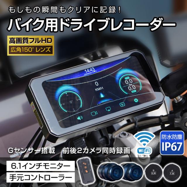 ドライブレコーダー バイク用 ドラレコ 前後カメラ 前後同時録画 タイヤ空気圧 防水 防塵 IP67 Wi-Fi 高画質 フルHD FDH 1080p 常時録画 Gセンサー 広角150° 煽り運転 あおり運転 事故 オートバイ iOS CarPlay Android Auto ee416