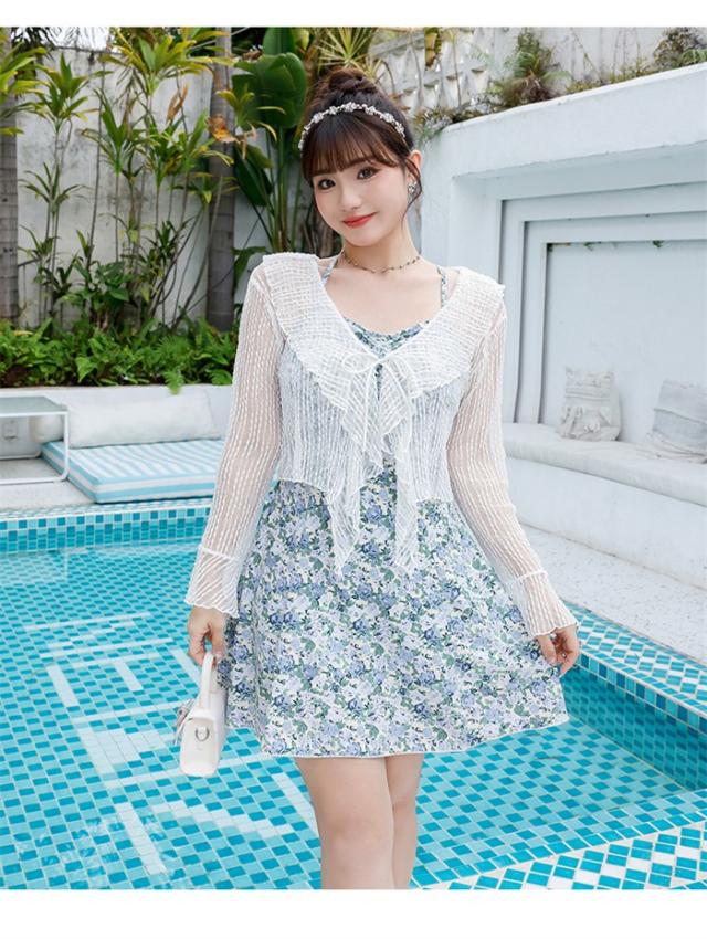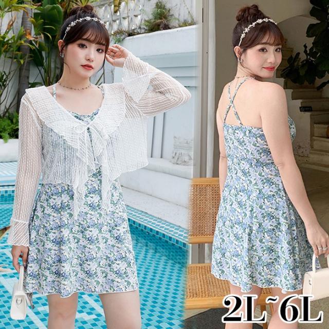 大きいサイズ 水着 レディース 体型カバー グリーン 3点セット 服みたいな ワンピース水着 4L 5L 6L ぽっちゃり ボレロ おしゃれ 大人 可愛い オールインワン オトナ女子 ショートパンツ 温泉 露出控えめ 韓国風 女性用 10代 20代 30代 40代 ラッシュガード