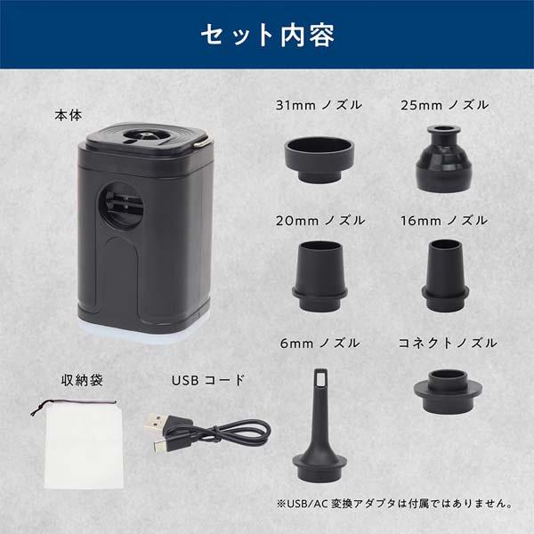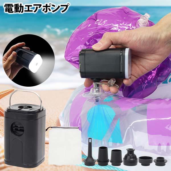 電動ポンプ エアーポンプ 充電式 ライト付き コンパクト 6種ノズル 空気入れ 空気抜き 送風 軽量【 アウトドア キャンプ 火おこし バーベキュー 焚き火 ビニールプール うきわ エアマット エアベッド 便利 】 /60N◇ エアポンプMEH