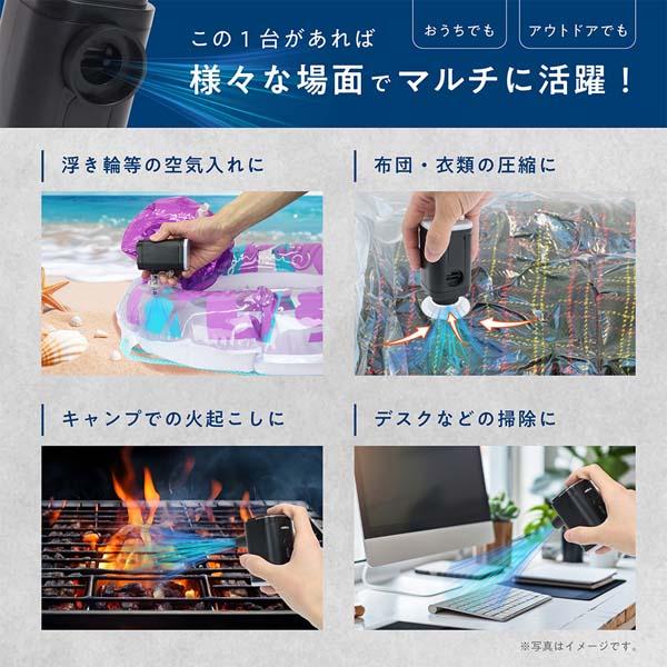 | 空気入れ、送風、空気抜き、圧縮、掃除に ライト(弱・強)&SOSライト付き |