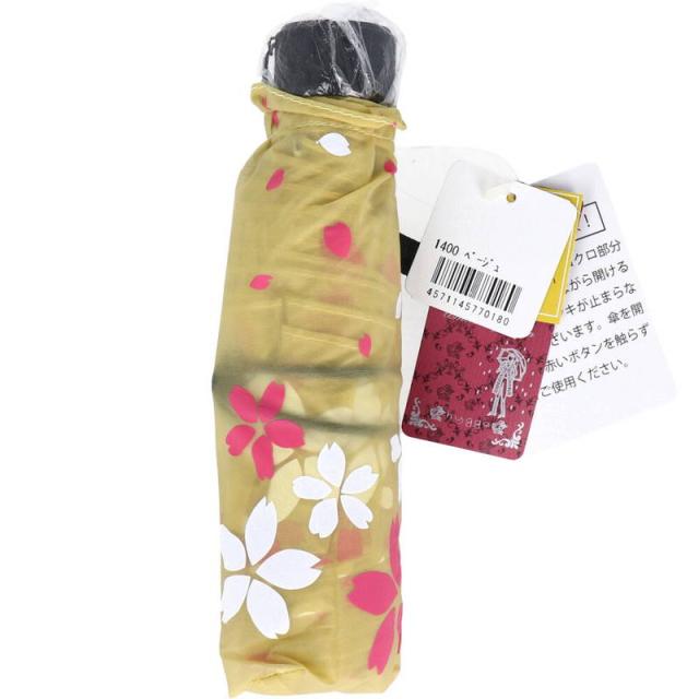 折りたたみ傘 日傘 晴雨兼用 軽量 コンパクト ポケブレラ 極小5段マイクロ 桜柄 ベージュ