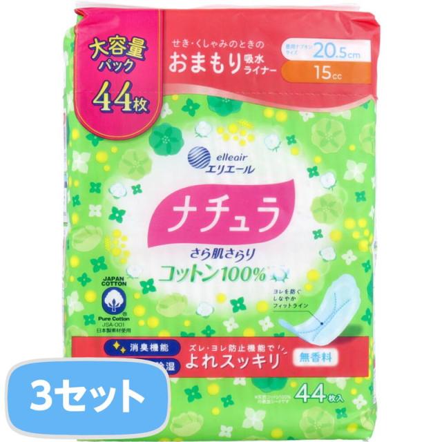 尿取りパッド 軽度尿漏れ ナチュラ さら肌さらり コットン100% おまもり吸水ライナー20.5cm 15cc 44枚x3セット