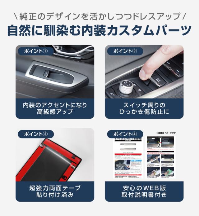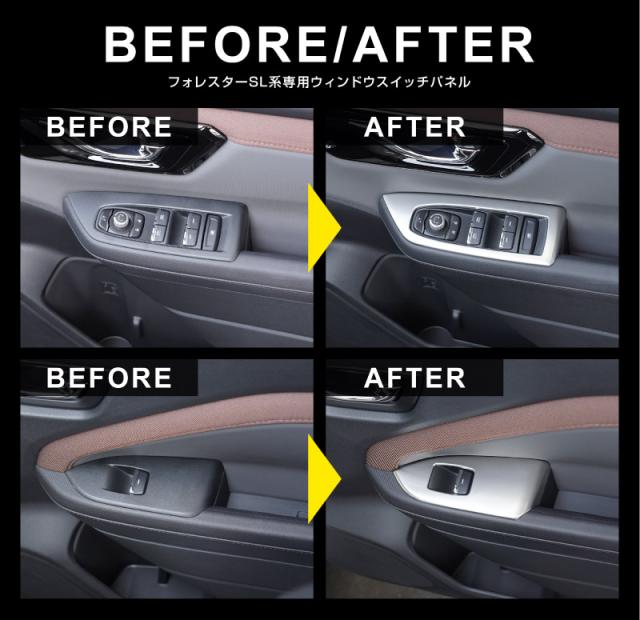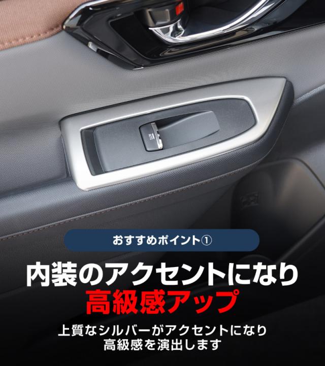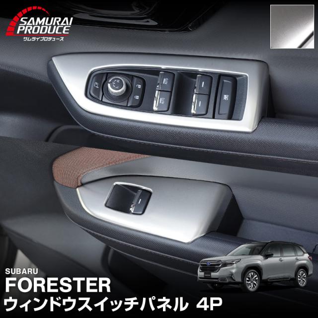 スバル 新型フォレスター SL系 ウィンドウスイッチパネル 4P サテンシルバー 専用 パーツ ドレスアップ アクセサリー オプション インテリア スイッチ カバー パネル 内装 カー用品
