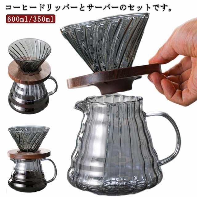 2?4人分 600ml/350ml ハンドドリップ ドリッパー ガラス コーヒーサーバーとサーバーセット コーヒードリッパー おしゃれ 珈琲ドリッパー