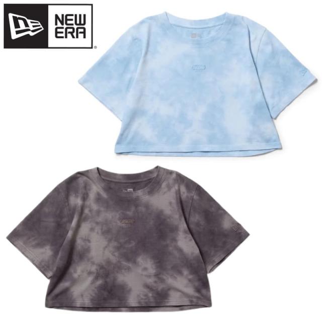 NEWERA ニューエラ 正規品 レディース 半袖 Tシャツ ティーシャツ 半袖Tシャツ クロップド ショート丈 短い ワイドシルエット ウィメンズ 女性用 タイダイ 青 ブルー グレー ブラック