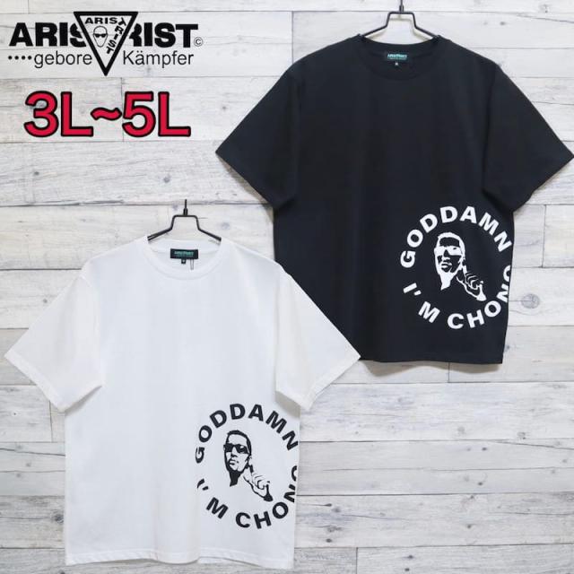 【送料無料】大きいサイズ メンズ ARISTRIST アリストトリスト 蝶野 正洋 半袖 Tシャツ 半袖Tシャツ ティーシャツ プロレス サークル ロゴ ガッデム ユニセックス レディース 白 ホワイト 黒 ブラック 3L 4L 5L