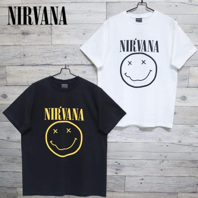 【送料無料】メンズ 半袖 Tシャツ 半袖Tシャツ ティーシャツ バンドTシャツ バンT ロックT プリント ニルヴァーナ Nirvana スマイル マーク ロゴ ユニセックス レディース 白 ホワイト 黒 ブラック