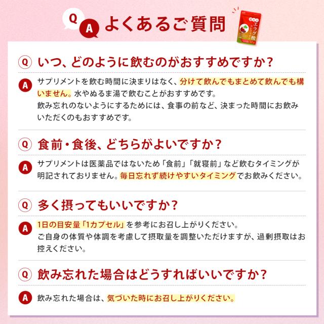 いつもの食事と一緒に1カプセルの摂取が目安です。